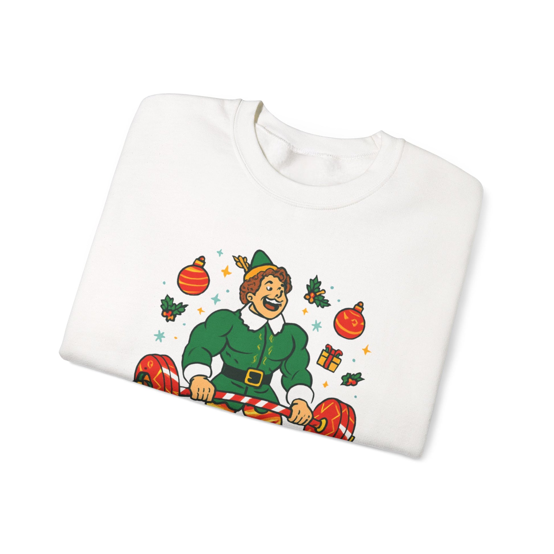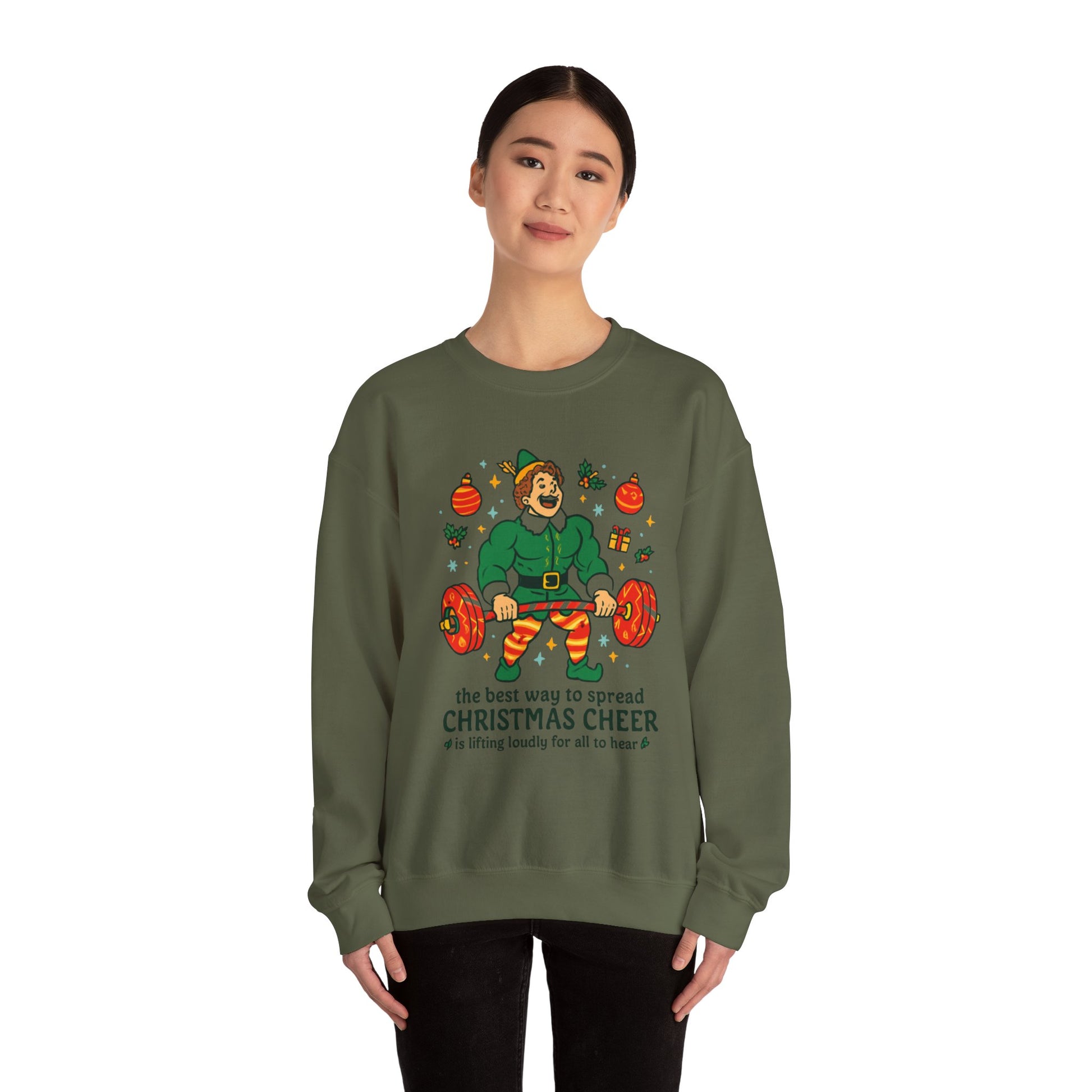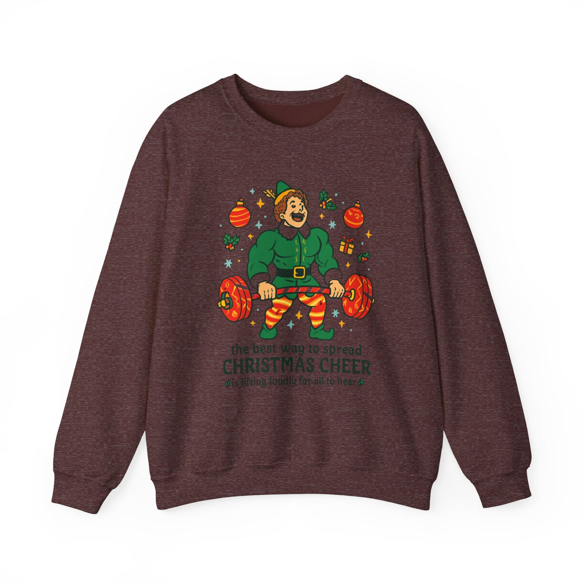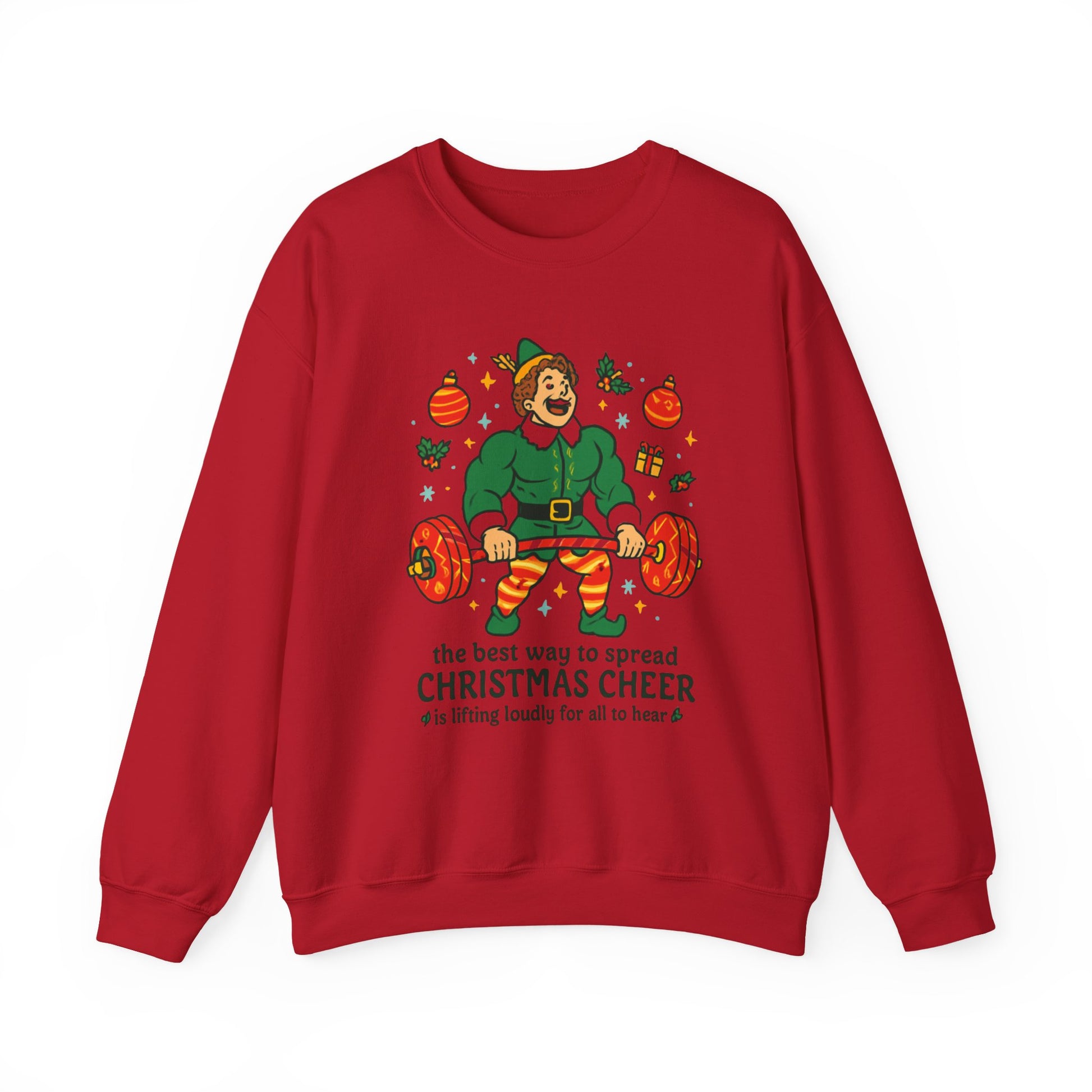 Christmas Elf Sweatshirt – 'The Best Way to Spread Christmas Cheer is Lifting Loudly' Holiday Crewneck
