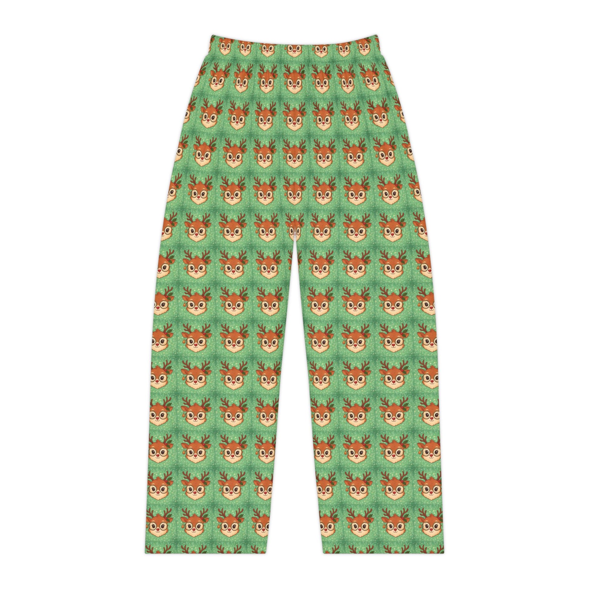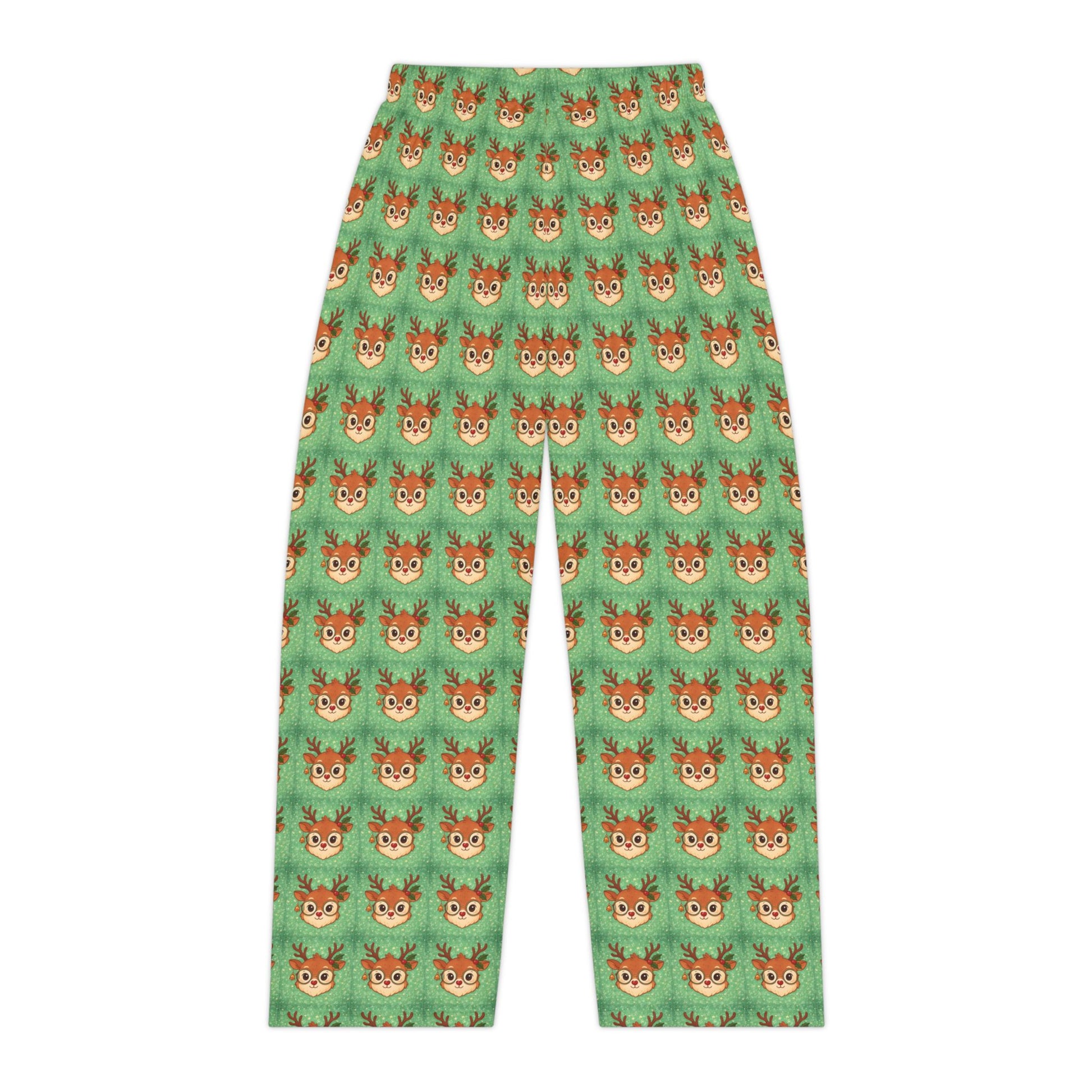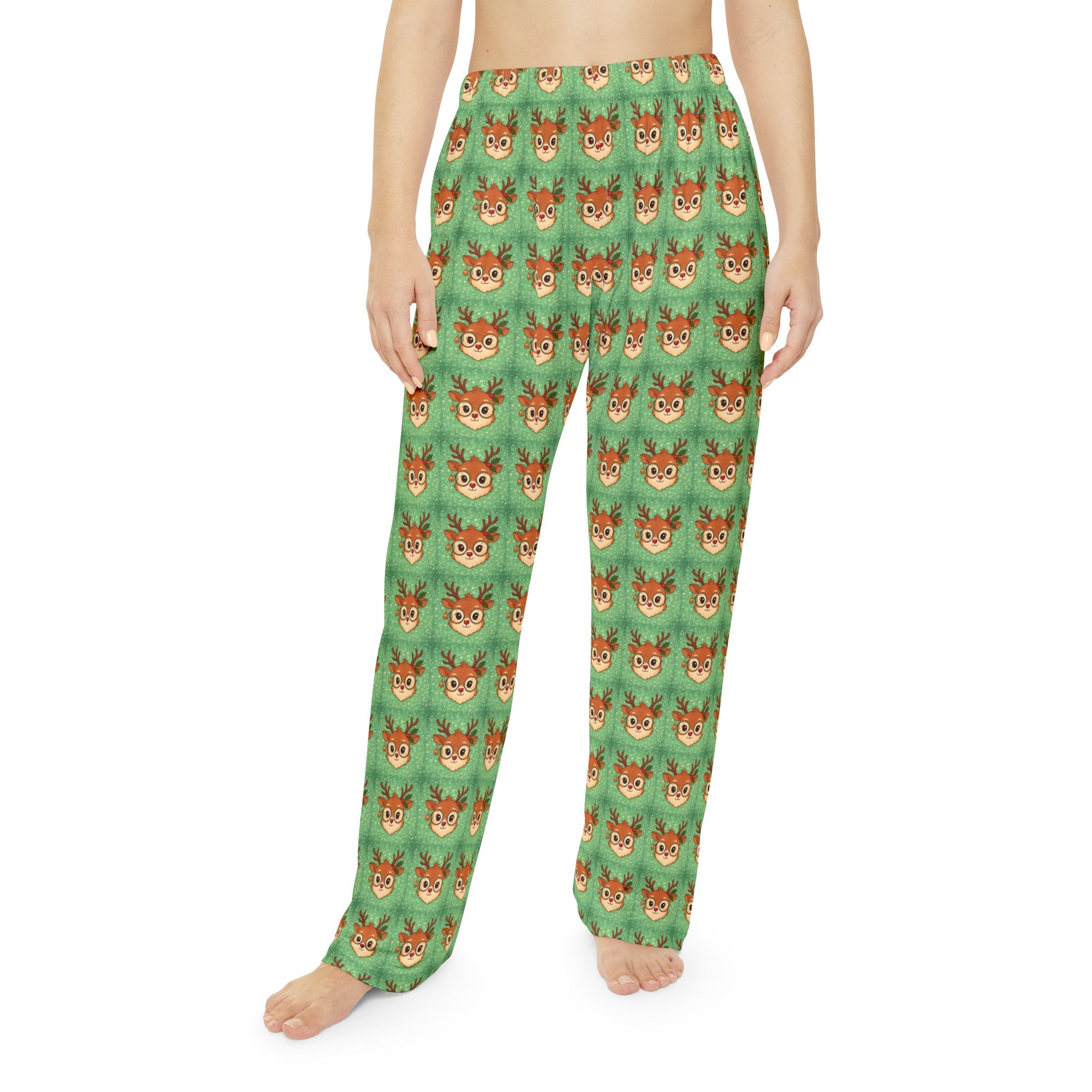 Christmas Reindeer Pattern Women's Pajama Pants — Cute Green All-Over Print Loungewear
