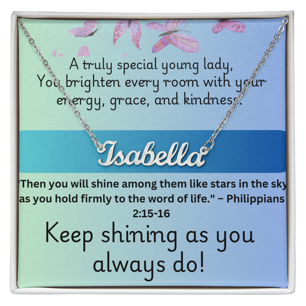 Give your special someone a custom necklace made just for them! Our Personalized Name Necklace is the perfect gift for your loved ones and will become a versatile accessory for any occasion. From a heart-warming holiday present, anniversary or birthday gift, or just because, this unique necklace adds a trendy touch to any outfit.