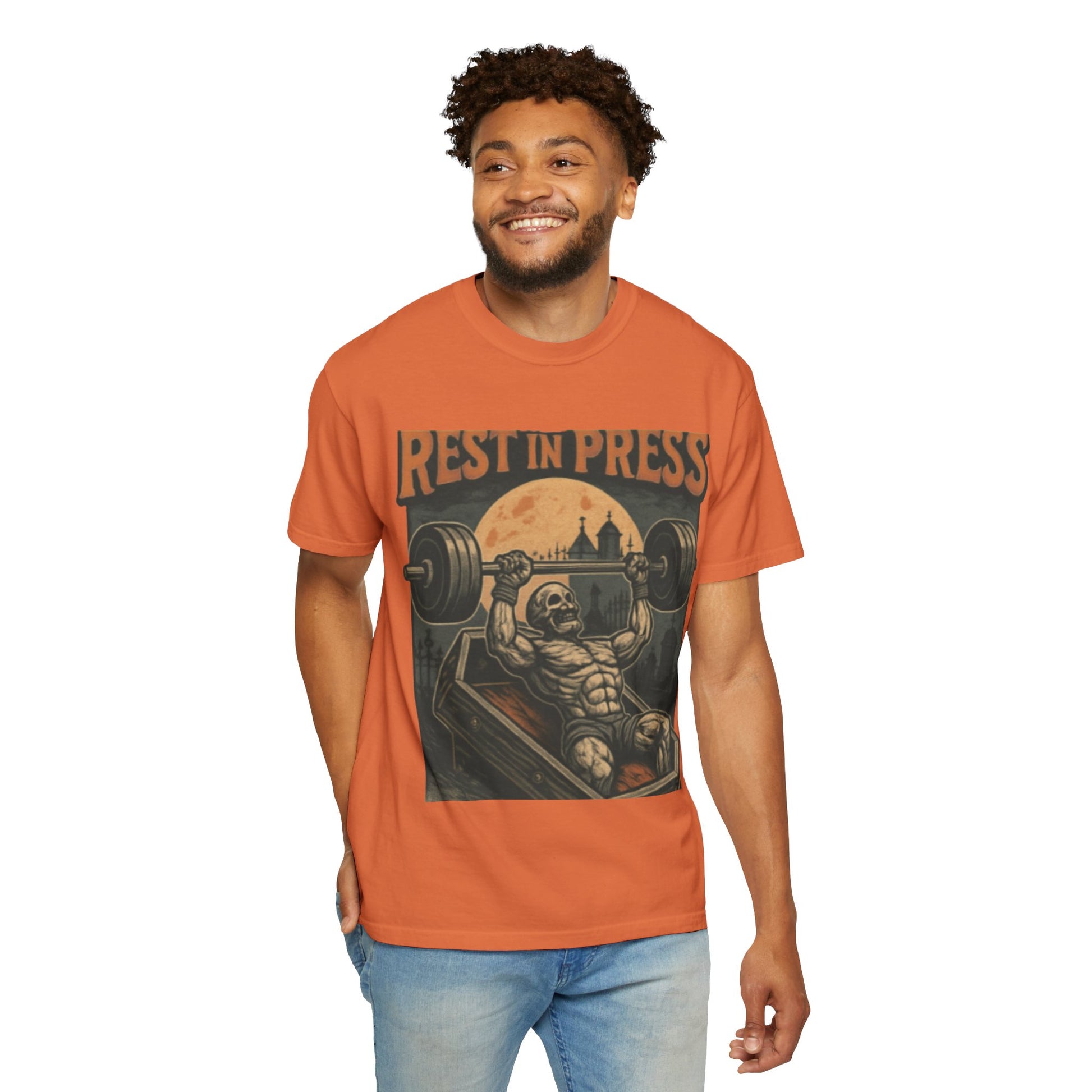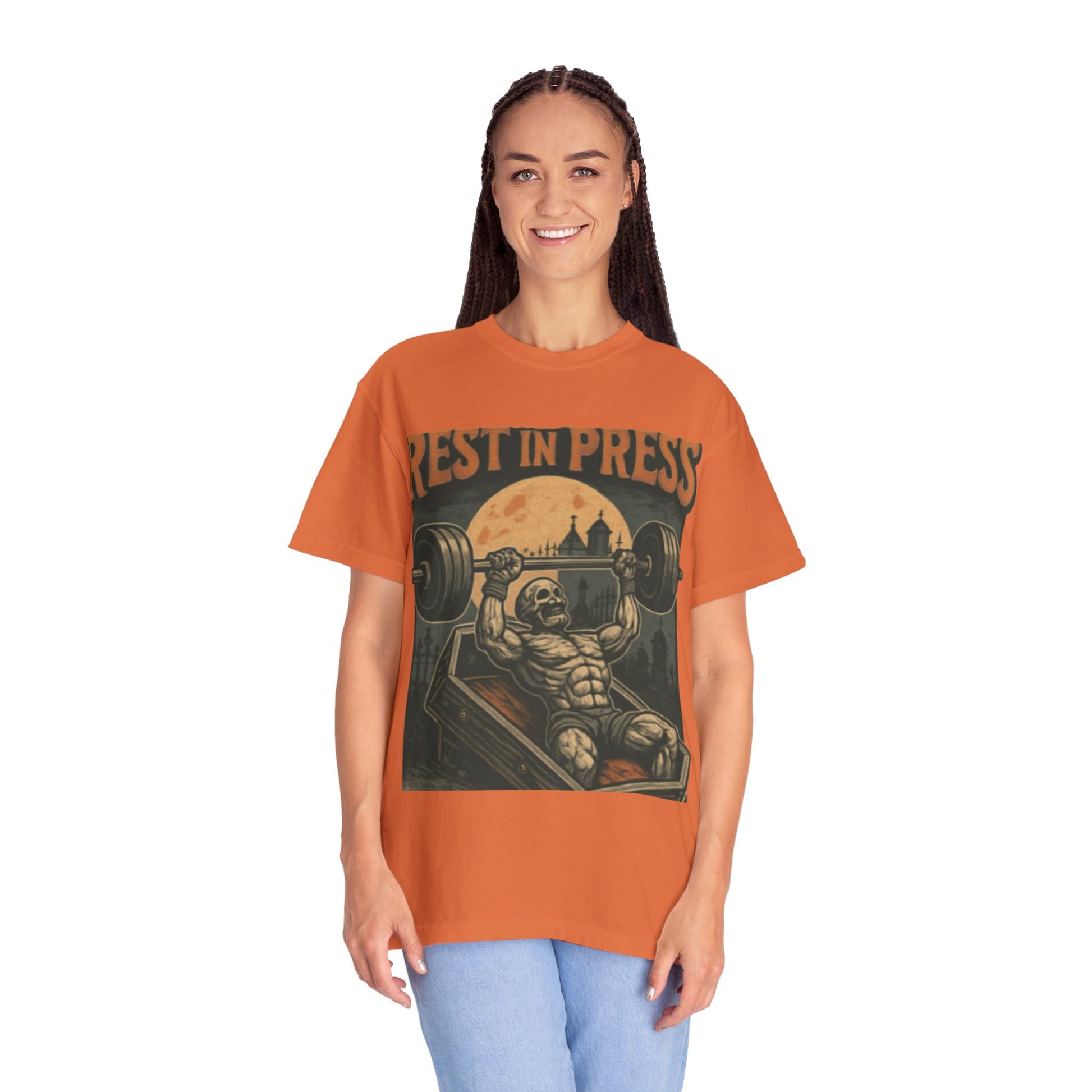 Made from soft, garment-dyed 100 % ring-spun U.S. cotton, this tee blends vintage horror-poster vibes with MAD gym grit. Perfect for Halloween season or year-round lifters who live (and die) for the bench.