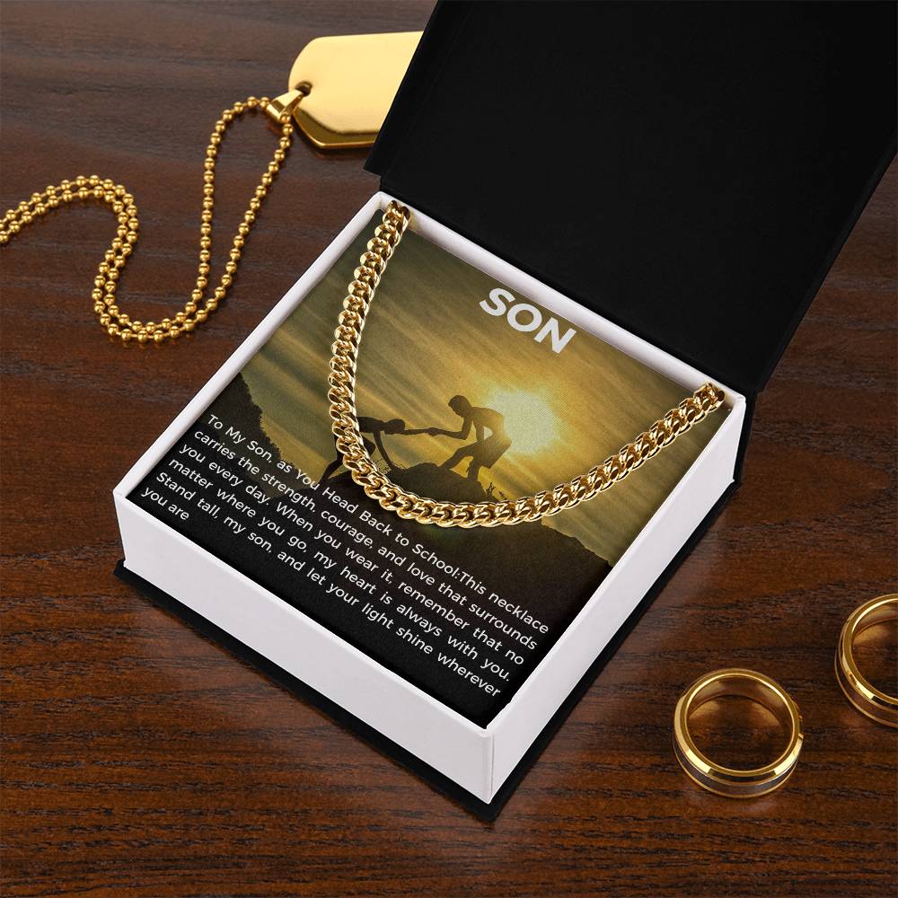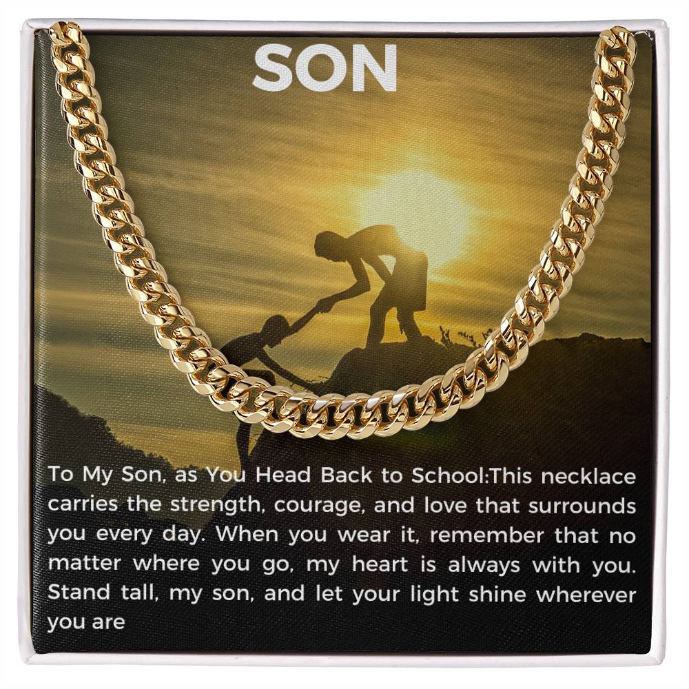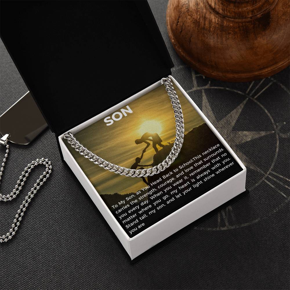 To My Son, as You Head Back to School: This necklace carries the strength, courage, and love that surrounds you every day.