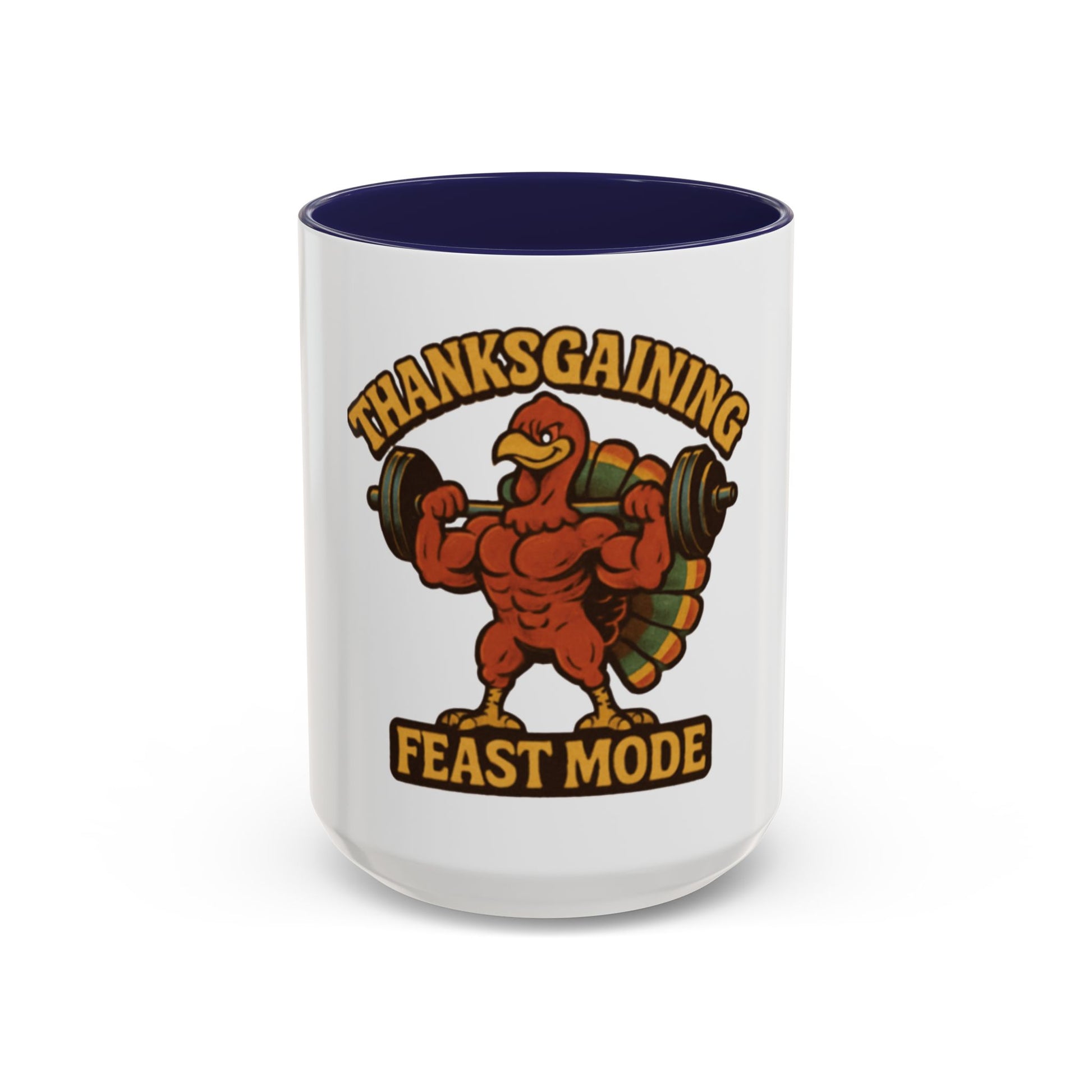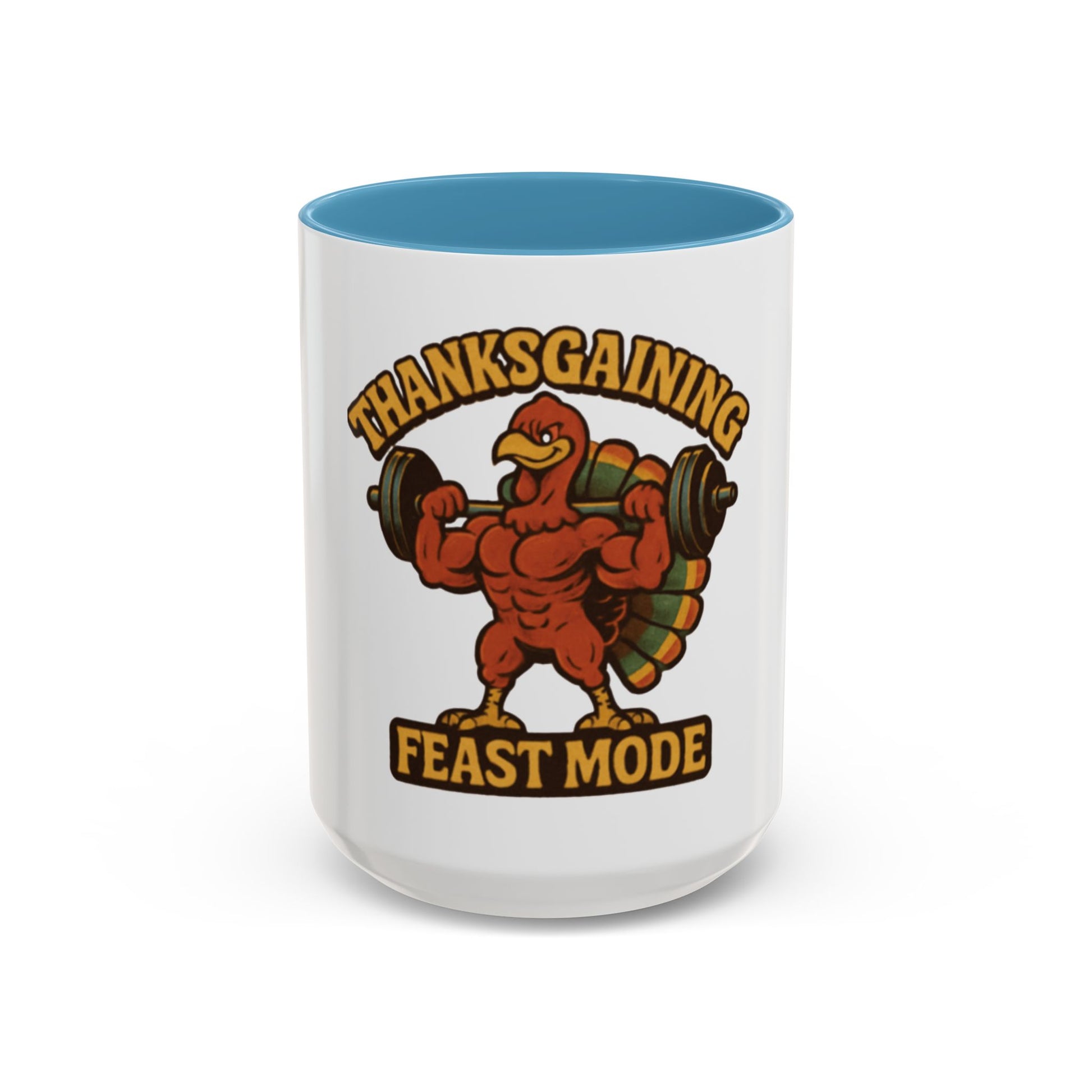 Thanksgiving Feast Mode Coffee Mug — Funny Muscle Turkey Accent Mug