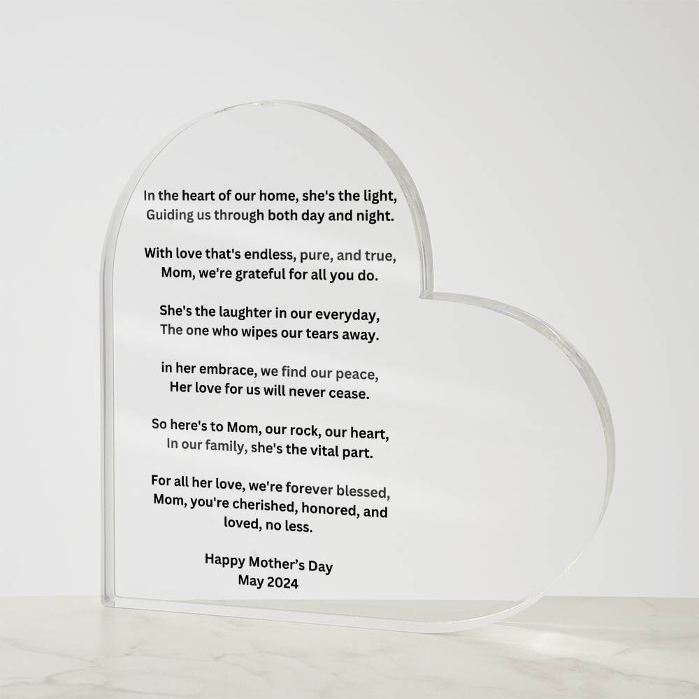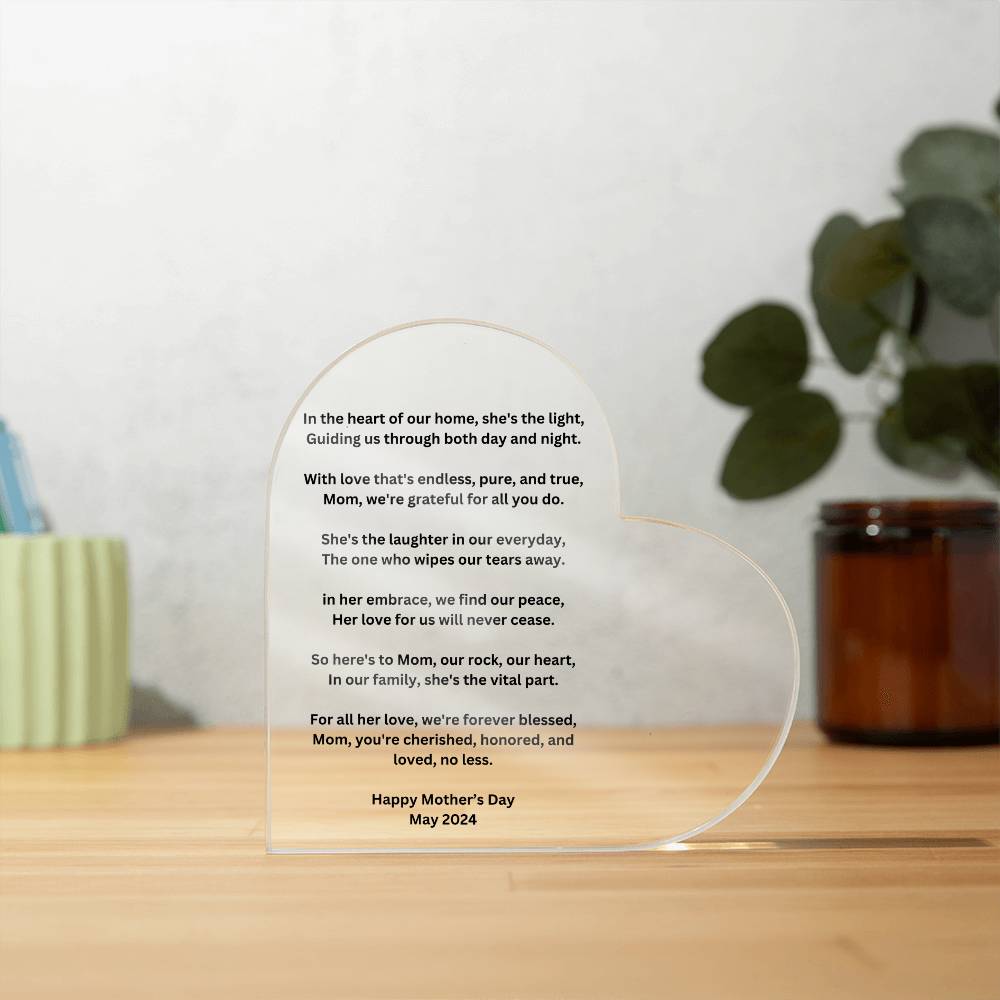 Show your loved ones how much you care with our Printed Heart Shaped Acrylic Plaque! Crafted with precision and care, this stunning piece of art is a perfect expression of your heartfelt emotions. Made from premium quality acrylic, it boasts a crystal-clear finish that catches the light, adding a touch of elegance to any space. The vibrant printed design creates a unique gift giving experience that will leave your special someone speechless! This is the ideal present for your beloved partner, family members, or dear friends on special occasions like anniversaries, weddings, birthdays, or Valentine's Day. Let your loved ones know how much they mean to you by purchasing today!