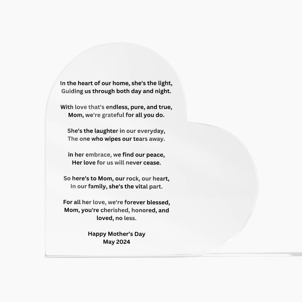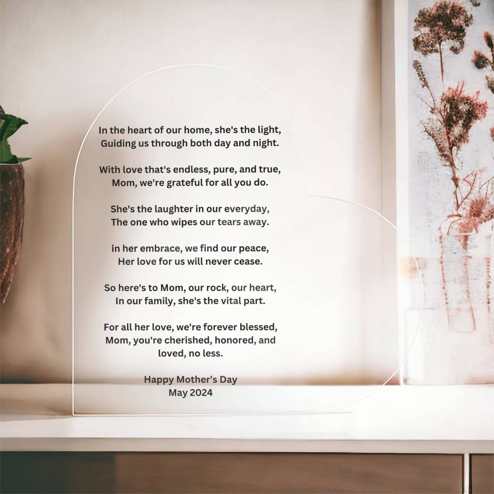 With love that's endless, pure, and true, Mom, we're grateful for all you do.